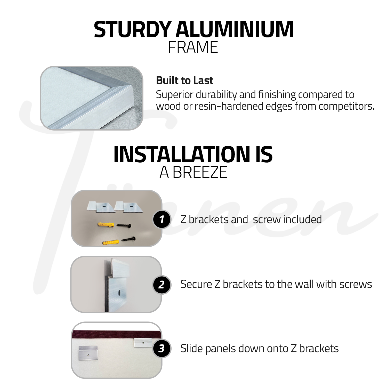 - Prime delivery & easy installation – Competitors may not be prime, we are. Z Brackets included, but you can also use glue or double sided tape. Flame retardant material.