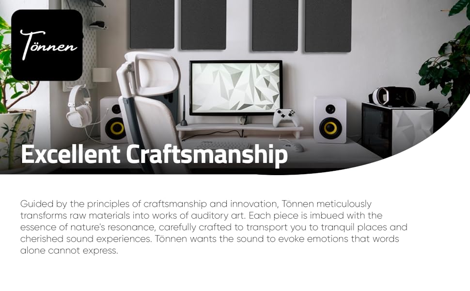 - High efficiency absorption – Go ahead and compare it with foam, Polyester or fiberglass panels with less than 2 inches and you will notice a big difference in results. Seriously, other low cost options are well known for not absorbing sound very well. Tonnen panels have excellent NRC rating for sound dampening. Be aware of fake NRC ratings out there.