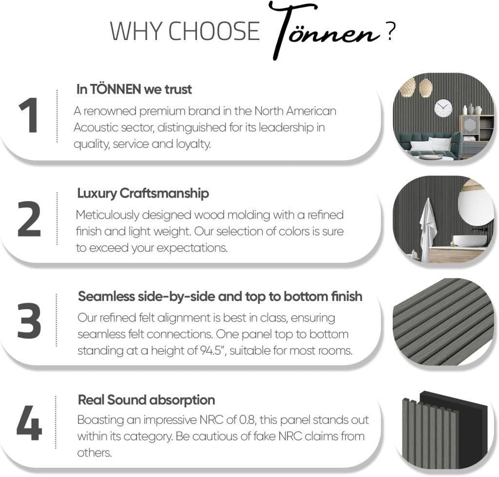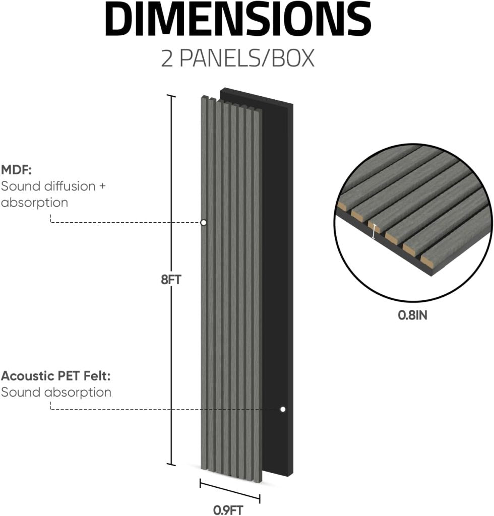 Tönnen Luxury Acoustic Wood Slat Panels | 2pack | 94x11x0.8″ each | Premium Interior Wall Décor (Italian Gray)